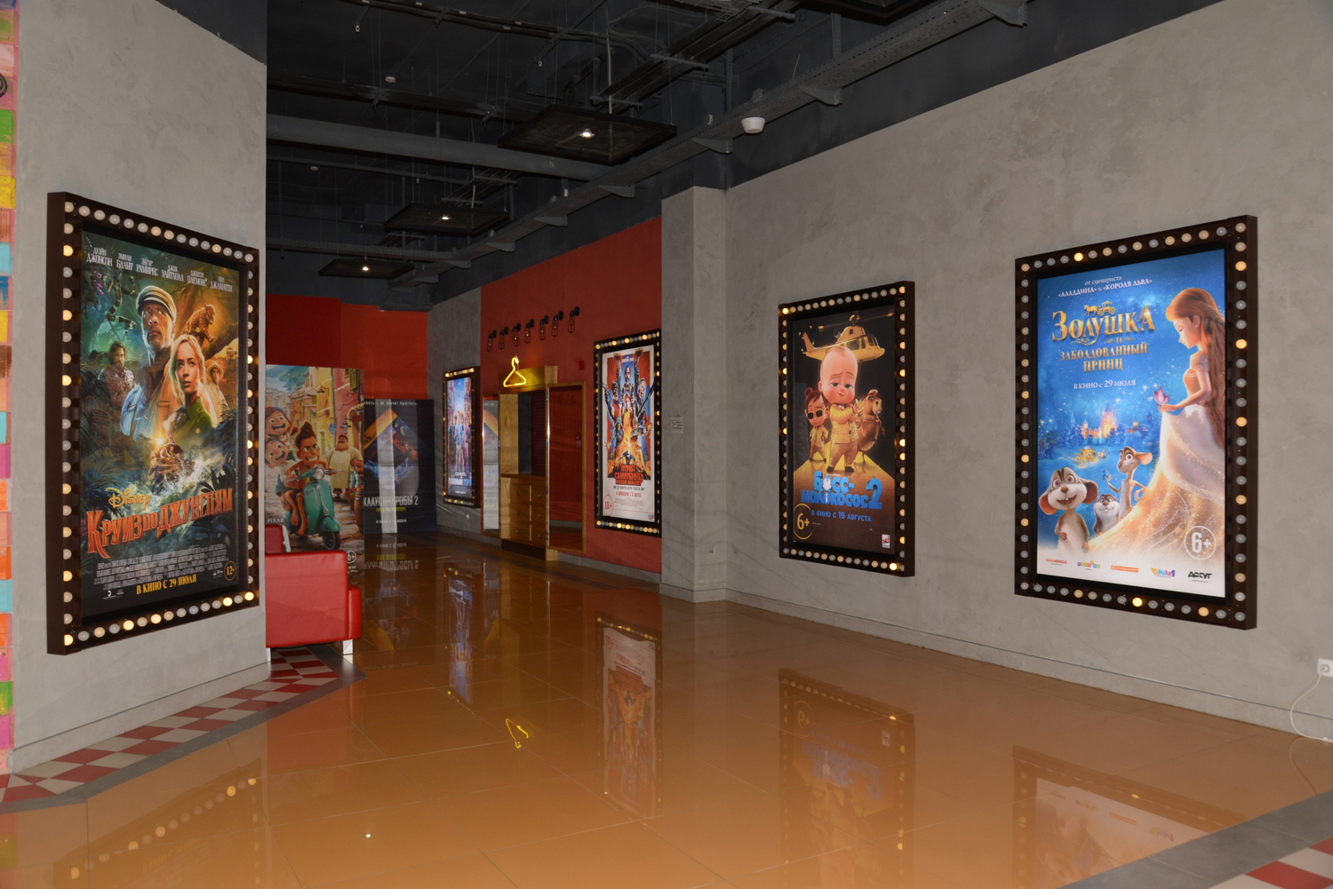 Яркий дизайн создаёт приятную обстановку и отличное настроение. Просторное фойе со стильными столиками в зоне Street Food Bar и уютные диванчики помогут приятно провести время во время ожидания сеанса. Экраны в фойе ненавязчиво транслируют актуальное расписание и информацию о привлекательных акциях.
